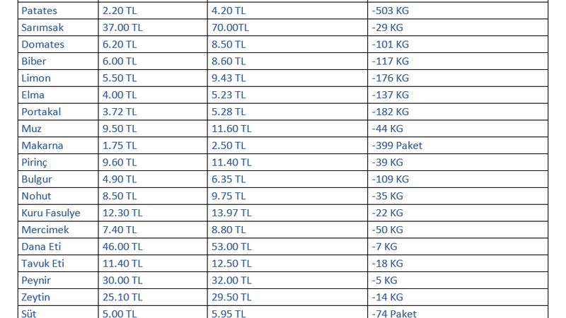 *Kaynak: TÜİK Madde Sepeti Ortalama Fiyatları ve Son Güncel Market fiyatlarına göre derlenmiştir.