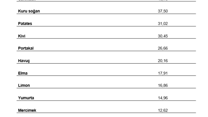 Nisan ayında en fazla artış gösteren maddelerin 12 tanesi temel besin ve gıda maddelerinden oluşmuştur.