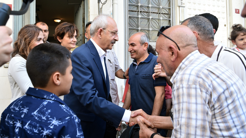 Daha sonra evden ayrılan Genel Başkan Kılıçdaroğlu, sokakta kendisini bekleyen vatandaşlarla bayramlaştı, Kadir Hasan adlı çocuğu kucağına alarak sevdi. Bazı çocuklarla fotoğraf çektiren CHP lideri Kılıçdaroğlu, elini öpen bir çocuğun elini öptü.