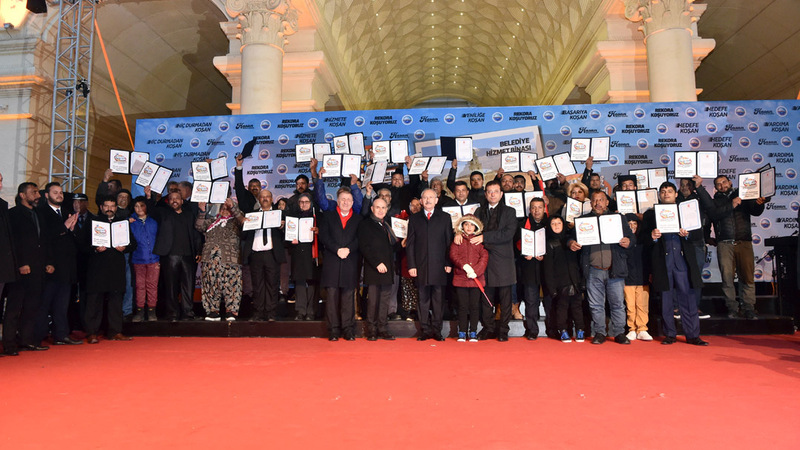 CHP Genel Başkanı Kemal Kılıçdaroğlu, İYİ Parti Genel Başkan Yardımcısı Ümit Özdağ, CHP İstanbul Büyükşehir Belediye Başkan Adayı Ekrem İmamoğlu ve Büyükçekmece Belediye Başkanı Hasan Akgün, Büyükçekmece'nin Karaağaç köyünde 90 yıldır tapu bekleyen 33 Roman vatandaşa tapularını dağıttı.