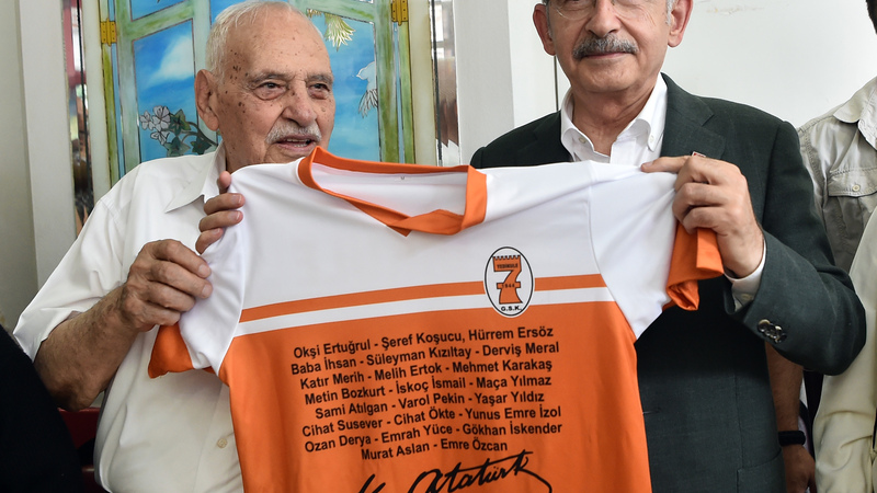 Görüşme sonrası Yedikule Spor Kulübü Başkanı Derviş Meral, CHP Lideri Kılıçdaroğlu'na Yeditepe Spor Kulübü’nün formasını takdim etti.
