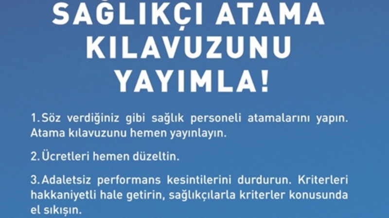 1-Söz verdiğiniz gibi sağlık personeli atamalarını yapın. Atama kılavuzunu hemen yayınlayın.