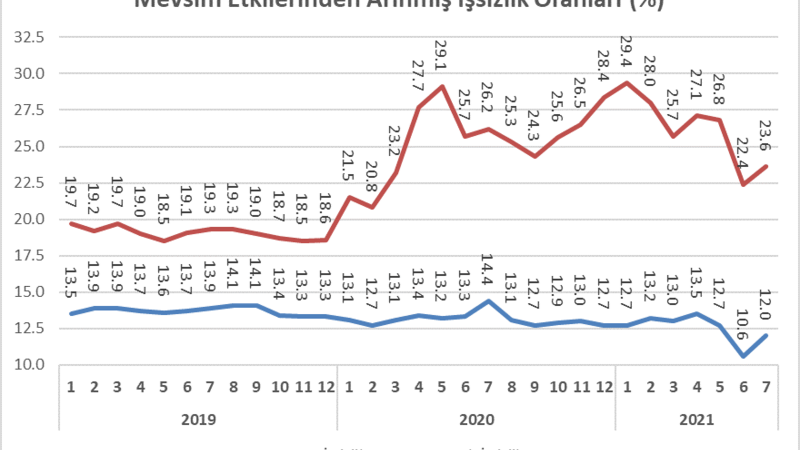 Temmuz ayında resmi işsizlik, önceki aya göre 1,4 puan artarak yüzde 12’ye, gerçek işsizlik ise 1,2 puan artarak yüzde 23,6’ya çıktı. Son iki aydır gerileyen işsizlik, işten çıkarma yasağının kalkmasıyla artmaya başladı.