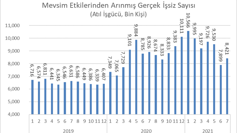 Temmuz’da resmi işsizlerin sayısı 506 bin kişi artarak 3,9 milyona; gerçek işsizlerin sayısı ise 522 bin kişi artarak 8,4 milyon oldu. Geçtiğimiz Temmuz’da da gerçek işsiz sayısı, 8 milyonlu seviyelerdeydi. 2021’de baz etkisiyle kaydedilen yüksek büyüme hızları işsizliği anlamlı şekilde azaltmıyor, rakamlardaki büyüme sokağa yansımıyor.