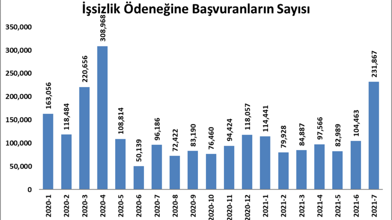 Temmuz’da işsizlik ödeneğine başvuranların sayısı yaklaşık 232 bin kişi. Bu son 15 ay içerisinde gerçekleşen en yüksek işsizlik ödeneği başvuru sayısı.