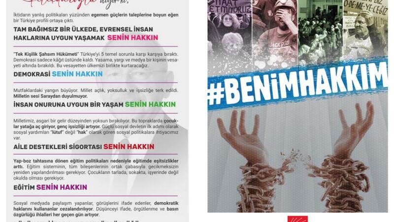 Cumhuriyet Halk Partisi olarak bu amaçla, hak mücadelemizi halkın içinde halkla birlikte büyütmek hedefi ile BENİM HAKKIM broşürlerimizle bugün 81 ilde hep birlikte sahadayız. Tüm illerde vatandaşlara haklarını, hak arama yollarını anlatacağız. Sunulan hizmetlerin hiçbir siyasi partinin lütfu olmadığını, bunların anayasal güvence altında olduğunu ve aynı zamanda devleti yönetenlerin görevi olduğunu anlatacağız.