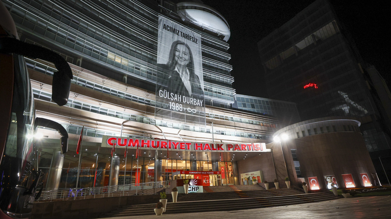 Tedavi gördüğü Manisa Şehir Hastanesi'nde hayatını kaybeden Şehzadeler Belediye Başkanı Gülşah Durbay'ın fotoğrafının yer aldığı pankart CHP Genel Merkez binasına asıldı.
