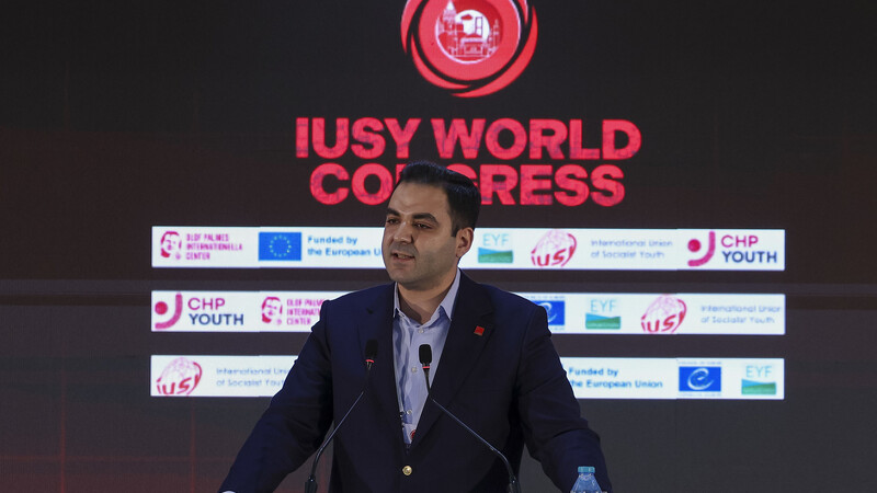 Sosyalist Enternasyonal Gençlik Örgütü Dünya Kongresi, CHP Gençlik Kolları ev sahipliğinde İstanbul’da düzenleniyor. Kongrenin açılış konuşması yapan CHP Gençlik Kolları Genel Başkanı Cem Aydın, katılımcıları Nazım Hikmet’in "Gelmiş dünyanın dört bir ucundan, ayrı dilleri konuşur, anlaşırız, yeşil dallarız dünya ağacından, gençlik denen bir millet var, ondanız" dizeleriyle selamladı.