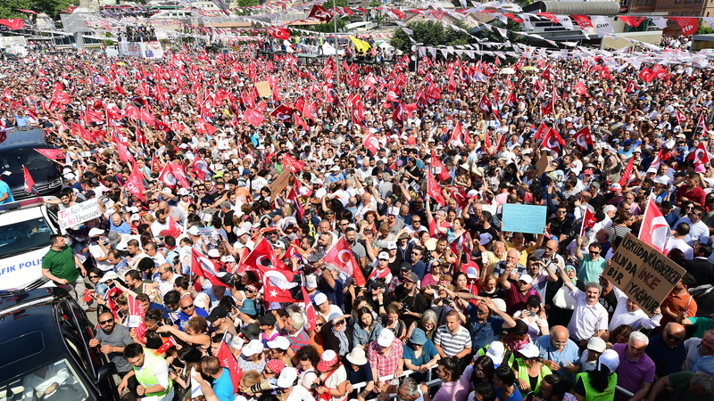 Üsküdar'da düzenlenen mitingde halka seslenen CHP Cumhurbaşkanı adayı İnce, bugün seçim kampanyasında 41. gün ve gerçekleştirdiği 92. miting olduğunu belirterek, Türkiye'yi karış karış gezdiğini, sokaktaki değişim rüzgarı ve umudu gördüğünü söyledi.