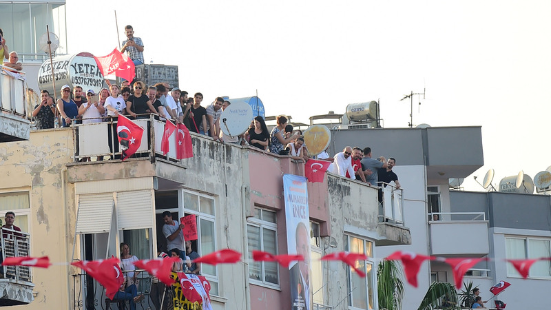 CHP Cumhurbaşkanı Adayı Muharrem İnce, Mersin'de Tevfik Sırrı Gür Stadı yanında düzenlenen mitingde, bir siyasetçinin "Meydanlar doluysa sevinebilirsin, balkonlar doluysa işler iyi demektir, çatılar da doluysa kazandın demektir" dediğini anlattı.