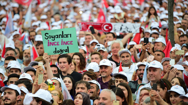 23 Haziran'daki büyük İstanbul mitingine herkesin Fenerbahçe, Galatasaray, Beşiktaş ve Trabzonspor formalarını giyerek, kol kola girerek, gelmesini isteyen Muharrem İnce, seçimi ilk turda kazanacağını ifade etti.