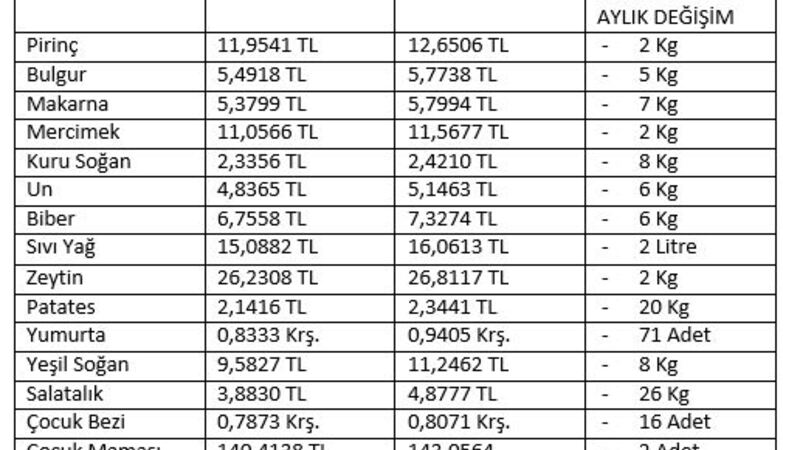 Kasım ve Aralık ayları arasında bazı besin ve gıda maddelerinde yaşanan artış 500 TL zammın asgari ücretlinin cebine girmeden mutfağında erimesine neden oldu.
