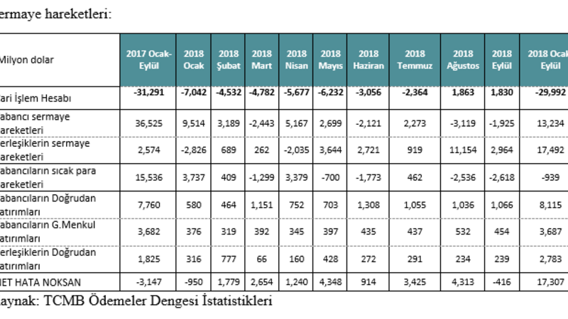 Yabancı sermaye hareketlerinin önemli bir bölümünü sıcak paranın oluşturmaya devam ettiğinin altını çizen Erdoğdu, Mayıs ayından itibaren Temmuz ayı dışında hep çıkış yönünde hareket olduğunu söyledi. Mayıs ayından itibaren toplam çıkışın 7,1 milyar dolara ulaştığına dikkat çeken Erdoğdu, yabancıların doğrudan yatırımlarında sadece Eylül ayında 1 milyar dolarlık giriş gerçekleştiğini, bunun da yüzde 40’ının gayrimenkul yatırımlarına gittiğini bildirdi.