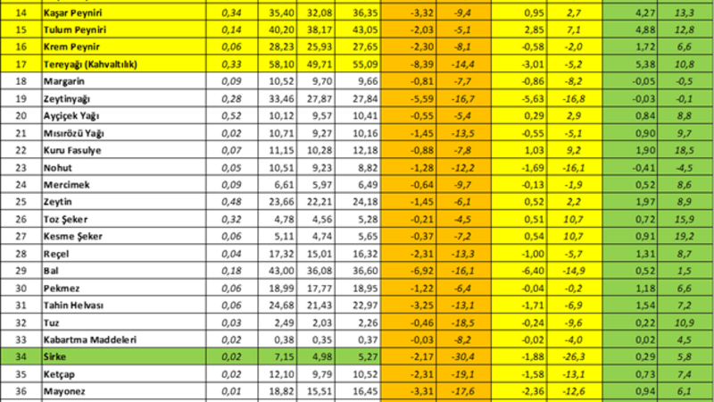 “Örnekleme sonradan dahil edilen zincir marketlerden derlenen fiyatların ortalama madde fiyatlarında olağandışı düşüşlere neden olup olmadığı da açıklanmadı. Ancak, TÜİK’in TÜFE’de yaptığı bu değişikliklerin üzerinden 9 ay geçti ve yayınlanan fiyat verileri üzerinden TÜFE’nin aşağı yönlü tökezletilmesi daha iyi gözlemlenebilir hale geldi. Örneğin TÜİK’in TÜFE veri tabanındaki 134 gıda maddesinden 47’sinin ve 6 adet temizlik-kişisel bakım ürününün fiyatları Aralık 2018, Ocak 2019 ve Ağustos 2019 verileri esas alınarak incelendi. Bu toplam 53 kalem ürünün TÜFE sepetindeki toplam ağırlığı yüzde 10,13. Rakamlara baktığınızda TÜFE hesaplamasının yaklaşık onda birlik kısmının Ocak 2019’dan beri ciddi şaibeler barındırdığı görülüyor.
