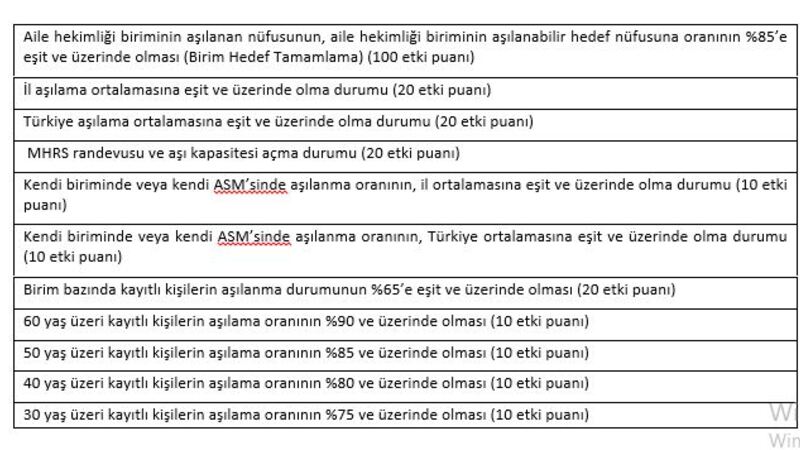 15/7/2021 tarihli ve 31542 sayılı Resmi Gazete ’de yayımlanan Aile Hekimliği Sözleşme ve Ödeme Yönetmeliğinde Değişiklik Yapılmasına Dair Yönetmeliğin 1 inci maddesi ile Aile Hekimliği Sözleşme ve Ödeme Yönetmeliğine, “Covid-19 salgını nedeni ile yapılacak ilave ödemeler GEÇİCİ MADDE 1- (1) 1/7/2021 tarihinden geçerli olmak üzere üç ay süreyle bu Yönetmelikte belirlenen esaslara tabi olmaksızın, sözleşmeli aile hekimlerine net aylık 3.000.-TL’ye kadar, sözleşmeli aile sağlığı çalışanlarına net aylık 1.500.-TL’ye kadar Covid-19 aşısı yapılması hususu dikkate alınarak Sağlık Bakanlığınca belirlenen tutarda ilave ödeme yapılabilir denmiştir.
