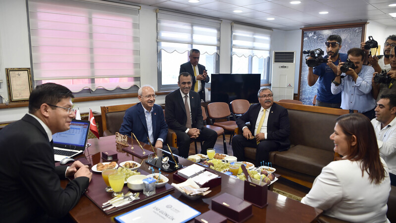 CHP Genel Başkanı Kemal Kılıçdaroğlu, Aydın Nazilli Belediye Başkanı Kürşat Engin Özcan'ı makamında ziyaret etti.