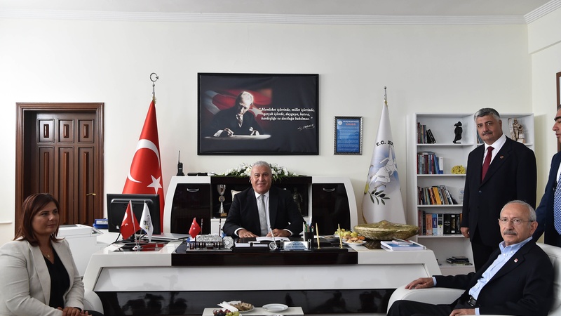 CHP Genel Başkanı Kemal Kılıçdaroğlu, Aydın Efeler Belediye Başkanı Mehmet Fatih Atay'ı makamında ziyaret etti, çalışmaları hakkında bilgi aldı.
