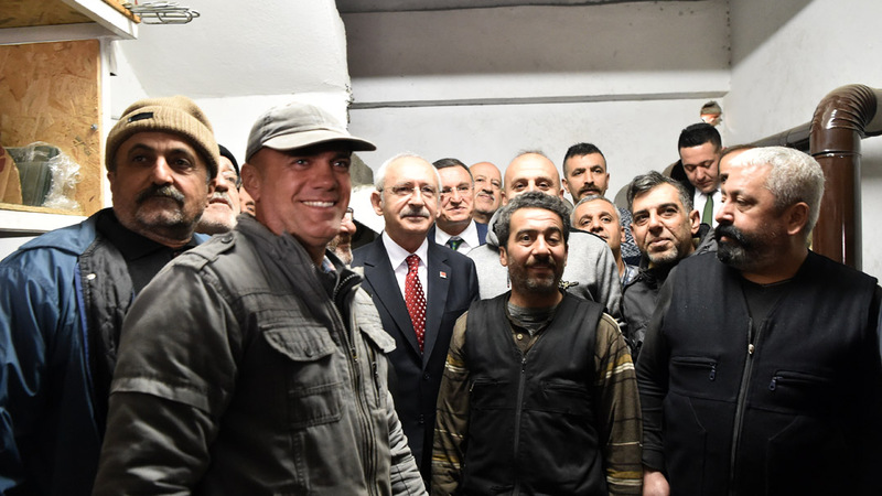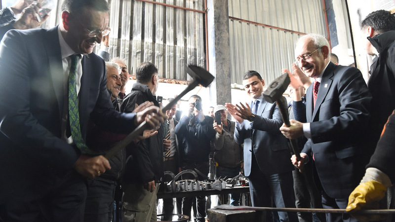 Daha sonra Antakya Demirciler Sitesi'ni ziyaret eden CHP lideri Kılıçdaroğlu, burada demir dövdü, vatandaşlarla çay içip, sohbet etti.