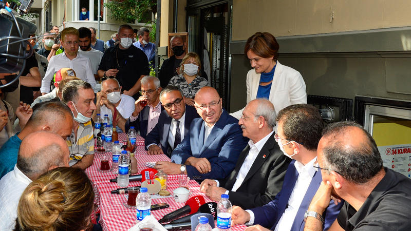 CHP lideri Kılıçdaroğlu, daha sonra çevredeki kafelerde oturan vatandaşlarla selamlaşarak fotoğraf çektirdi.