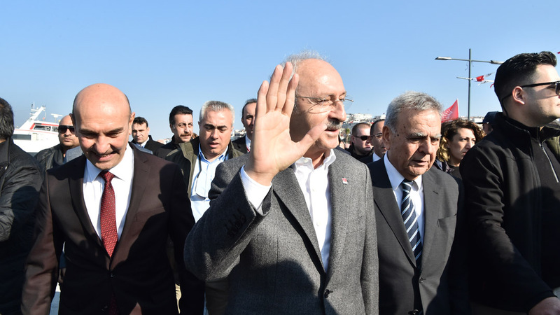 İzmir Büyükşehir Belediye Başkanı Aziz Kocaoğlu, CHP İl Başkanı Deniz Yücel ve CHP'nin İzmir Büyükşehir Belediye Başkan Adayı Tunç Soyer ile ilçe belediye başkanları da CHP lideri Kılıçdaroğlu'na eşlik etti.