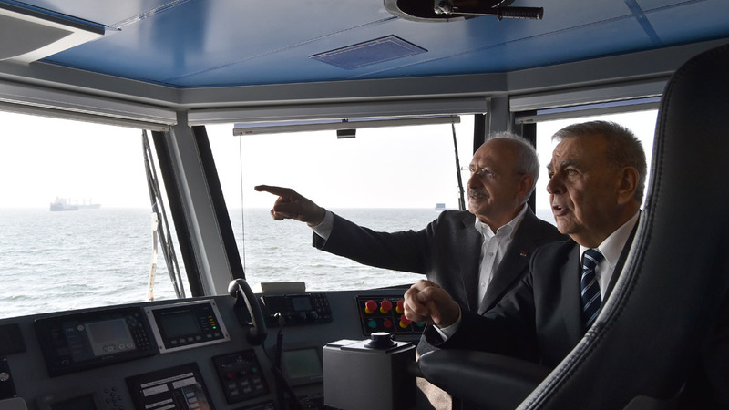 Bir süre vapurun kaptan köşkünde seyahat eden CHP Genel Başkanı Kemal Kılıçdaroğlu, Karantina Vapur İskelesi'nde inerek, İzmir Büyükşehir Belediyesinin Konak ilçesinde yaptığı 15 Temmuz Demokrasi Şehitleri Meydanı'nın açılış törenine katıldı.