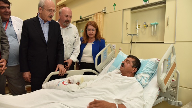Ünye Devlet Hastanesi'ne giden Genel Başkan Kılıçdaroğlu, selde yaralanan ve ortopedi servisinde tedavi gören İsmet Koç, Şükriye Kınacı, Hayati Yeşilyurt ve Hasan Arslan'ı ziyaret ederek geçmiş olsun temennisinde bulundu.