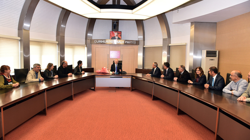 CHP Genel Başkanı Kemal Kılıçdaroğlu, TMMOB Mimarlar Odası Ankara Şube Başkanı Tezcan Karakuş Candan ve beraberindeki heyet ile parti genel merkezindeki makamında bir araya geldi.
