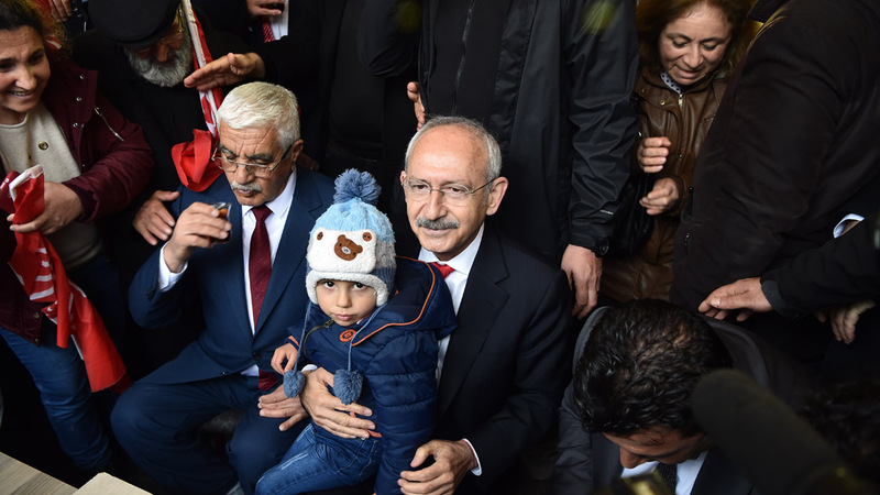 Konuşması sırasında kendisini çaya davet eden vatandaşlarla bir çay ocağında bir araya gelen CHP Genel Başkanı Kılıçdaroğlu, burada ilçe halkıyla da sohbet etti, çocukları sevdi.