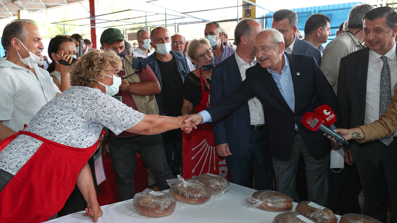 Pazarda kadınlarla sohbet eden Kılıçdaroğlu, pazarın kurulmasında emeği geçen Belediye Başkanı Gürkan'a teşekkür etti.