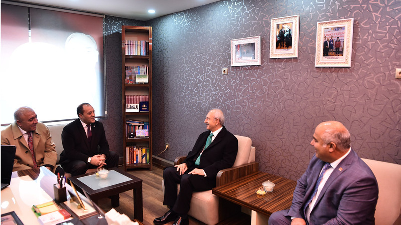 CHP lideri Kılıçdaroğlu, bu ziyaret öncesi parti binalarının karşısındaki MHP İl Başkanlığını da nezaket ziyaretinde bulundu.