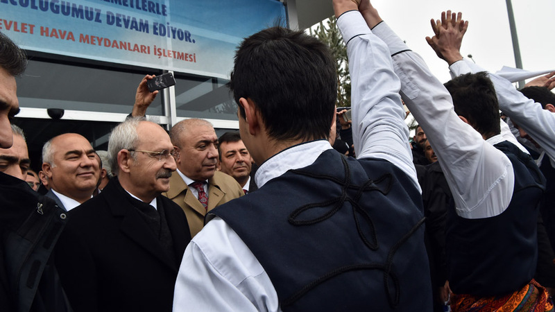 CHP lideri Kılıçdaroğlu'nu, Erzurum Havalimanı'nda, CHP Erzurum İl Başkanı Bülent Oğuz, Çat Belediye Başkanı Arif Hikmet Kılıç ve çok sayıda partili karşıladı.