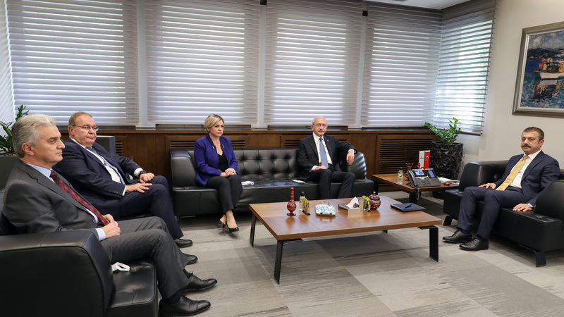Cumhuriyet Halk Partisi Genel Başkanı Kemal Kılıçdaroğlu, Türkiye Cumhuriyet Merkez Bankası (TCMB) Başkanı Şahap Kavcıoğlu'nu ziyaret etti. CHP lideri Kılıçdaroğlu'na Genel Başkan Yardımcısı ve Parti Sözcüsü Faik Öztrak, Genel Başkan Yardımcısı Bülent Kuşoğlu ile Genel Sekreter Selin Sayek Böke eşlik etti.
