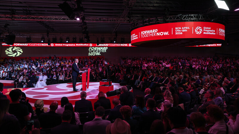 “Değerli yoldaşlar, dünyada otoriterliğin yükseldiği, demokrasinin ve hukukun üstünlüğünün yıkılmaya çalışıldığı bir dönemdeyiz. Bizi bugün bir araya getiren ise bu yıkım girişimine ‘Dur’ deme kararlılığımızdır. 21’nci yüzyılın ikinci çeyreğine girerken birbirinden öğrenen robotlardan, karanlık fabrikalardan ve yapay zekadan endişe ediyorduk. Ama karşımızda birbiriyle konuşan, birbirinden öğrenen ve birbirine güç veren otokratların karanlık siyasetini bulduk. Kendi iktidarlarının devamı uğruna demokrasiyi, hukukun üstünlüğünü, eşitliği, adaleti, toplumsal refahı yıkmaktan çekinmeyen bir anlayışı görüyoruz. Bu salondaki irade, işte bu yıkım gayretine verilmiş en iyi cevaptır. İhtiyacımız olan; birbirinden öğrenen, birbirine öğreten, birbirine güç veren ilericilerdir. İşte o irade bu salondadır. Bugün altı kıtadan ilericiler bu salonda ve hep birlikte bir seferberlik ilan ediyoruz. Seferberliğimiz; kurumları, kuralları ve demokrasiyi gerileten otoriterliğe karşı hep beraber durmak içindir. Kararlılığımız; kurumları inşa etmek, kuralları tesis etmek, demokrasiyi yaşatmak içindir.”