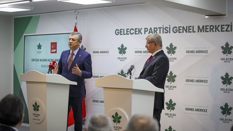 Cumhuriyet Halk Partisi Lideri Özgür Özel, Gelecek Partisi Genel Başkanı Ahmet Davutoğlu ile partisinin genel merkezinde bir araya geldi. Görüşmenin ardından konuşan Cumhuriyet Halk Partisi Genel Başkanı Özel, “Değerli basın mensupları içinde bulunduğumuz şartlar gereğince sizin de yakından takip ettiğiniz gibi siyasi partilerin Sayın Genel Başkanlarına heyetimizle birlikte ziyaretlerde bulunuyoruz. Aslında Ramazan Bayramı’nda bayramlaşma telefonu sırasında bu ziyaretlerle ilgili bir nevi sözleşmiştik tarihini netleştirmeden. Ama tabii o günkü gündemin üzerine çok farklı gündemler gelişti” dedi. Özel, şunları söyledi: