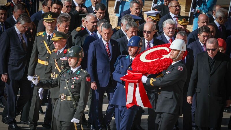 Cumhuriyet Halk Partisi Genel Başkanı Özgür Özel, Cumhuriyet'in Kuruluşunun 102. Yılı dolayısıyla Anıtkabir'de düzenlenen resmi törene katıldı.