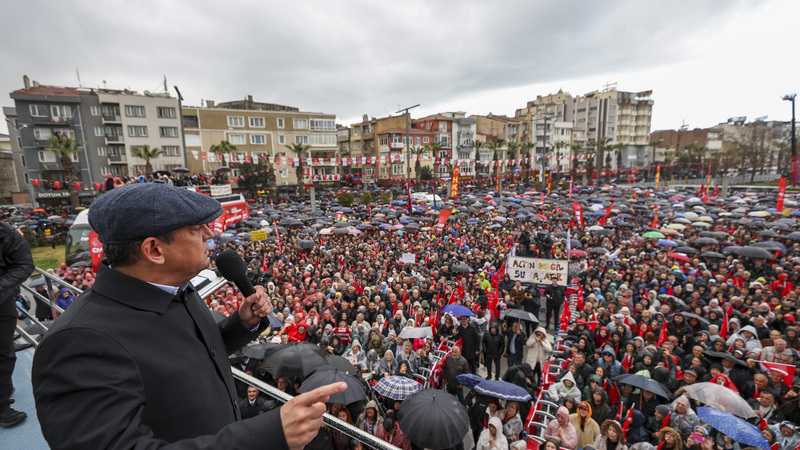 “Kolları sıvamam, kolları sıvamak benim işim değil. Benim işim kolları sıvayacak olanı hapisten çıkarmak. Hazır yağmur durmuş, montu da çıkardık. Şimdi buradan AK Parti’nin, Çanakkale’de AK Parti’ye oy vermiş, partinin seçmeni olan, akşamleyin televizyonu açıp AK Parti‘ye yakın kanalları izleyenlere bir şey söyleyeceğim. Bir senedir neler izlediniz neler… Ne iftiralar, ne hakaretler, ne haysiyet cellatlığı. Sonra ben bir yıl boyunca dedim ki ‘O iddianameyi istiyorum. Yargılanmak için değil, yargılamak için.’ Çünkü biliyordum ki, içinden beni, Ekrem Başkan’ı, arkadaşlarımızı mahcup edecek hiçbir şey çıkmayacak. 4 bin 500 sayfa iddianame çıktı. Peçete gibi bomboş. Buradan AK Parti’nin izlerken ‘Vay vay vay, neler yapmışlar, neler yemişler, ne rüşvetler, ne işler’ diyen, ama iddianame bu hale gelince suskunluğu gören, Tayyip Erdoğan’ın artık iddianame diyemediğini görenlere şunu hatırlatıyorum. Darbe günü TRT’de okunan bildiride TRT diyordu ki ‘560 milyar liralık yolsuzluk.’ 560 kuruşunu ispatlayamadılar. Her gün bir itirafçı mahkemede çıkıp ‘Savcılar zorladı, ben öyle demedim. Dışarı çıkarılma vaadine kanıp o yüzden o imzayı attım’ deyip, arkadaşlarımızdan helallik istiyorlar. Her geçen gün bunlar artarak çoğalıyor. Her gün mahkemede ortaya dökülüyor. İftirayı atan ispatlayamıyor, Sorulan sorulardan kimsenin yüzüne, hakimin dahi yüzüne bakamayacak hale geliyor. Şimdi buradan AK Parti ve MHP’lilere soruyorum. 560 milyar çöp oldu. ‘Bin 200 cep telefonu dağıttılar’ dediler. İddianamede yok. Sorulan gazeteci ‘Beni de kandırmışlar’ dedi. Ekrem İmamoğlu’nun lüks araçlarını gösterdiler. Araçlar MHP’li milletvekilinin çıktı. Ekrem Başkan’ın değil. Yine ‘İBB lojmanında parkenin altından 2 milyon euro para çıktı’ dediler. 2 cent bile çıkmadı. ‘Görüntüsü var’ dediler, görüntüsü yokmuş. Aranmış, parkenin altından taş çıkmış. Bunun da evrakı var. Evrakını iddianameye koymuyor, bulsa koyacak, temiz çıktı koymuyor. Lehe delili saklıyor aleyhte delili koyuyor. AK Partili amcam, MHP’li teyzem. Bunlar Gaziosmanpaşa Belediyesi’ni gösterdiler, belediye başkanının sırtından duvardan gizli kasa çıktı. Beynimden vuruldum. TRT’de gördüm, içinden dolar çıktı. Çılgına döndüm. Dedim ki ‘Hemen gidin arama tutanağını getirin. Kasa nereden çıktı, ne işi var belediyede?’ Dediler ki ‘AK Parti döneminde yapılmış, başkana devir teslimde kalmış.’ ‘İçinden nasıl dolar çıkar?’ Dediler ki ‘İçinden dolar değil mühür çıktı, mühür. Belediyenin mührü.’ ‘Peki o dolar görüntüsü ne?’ dedim. TRT’yi aradı bizim çocuklar. Dediler ki ‘Belediyeyi ararkenki görüntüleri bulamadık, stoktan kullandık. İçinde dolarlı kasa çıktı.’ MHP’li amcam, AK Partili teyzem sana sesleniyorum. O görüntüler yalan çıktı. İddianamenin içinden hiçbirisi çıkmadı. Söylenen, örneğin ‘Çantalarda para var’ dediler. İçinden jammer çıktı. Çantalar boş çıktı. ‘Ekrem İmamoğlu’nun görüntüsü var’ dediler, yalan çıktı. Hiçbiri iddianamede çıkmadı. Yaz boyunca ve sonbahar boyunca, kış boyunca üstünde tepindikleri yalanların hiçbir tanesi iddianamede yok. Onun için şimdi buradayız. Kaçıncı mitingdeyiz? Ne diyordu Erdoğan? ‘Bir ay geçsin birbirlerinin yüzüne bakamayacaklar. İnsan içine çıkamayacaklar.’ Sayın Erdoğan 100’ncü mitingdeyim. Karşımda Çanakkalelilerin yüzü var. Yüzlerine bakarak söylüyorum. Ekrem İmamoğlu masumdur. Tek suçu seni yenmektir. Ant içeriz, yine yenecektir.”