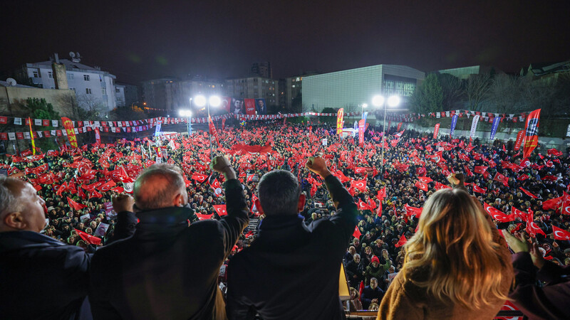 “Özellikle Sayın Erdoğan, Çekmeköy gibi yerde kışın ortasında, 21 Ocak akşamında ve hava sıfırın altında ve burada birileri seni istifaya davet ediyorsa Çekmeköy ilçe teşkilatının, il başkanlığının korkaklığındandır. Yazıklar olsun hepinize. Bunlar daha akıllanmadı. 31 Mart seçimlerini kaybedince ne yapacaklarını şaşıranlar, bizi durdurmak için İstanbul’un iradesine, belediye başkanlarımıza, Cumhurbaşkanı adayımıza saldıranlar 19 Mart günü bir sivil darbeye kalkıştılar. Cumhuriyet Halk Partisi’nin değil, Türkiye’nin Cumhurbaşkanı adayını ve İstanbul’un seçtiği Büyükşehir Belediye Başkanı’nı gözaltına aldılar. O gün bütün İstanbul’u Saraçhane’ye, yani İstanbul’un iradesinin karargahına, sembolik mekanına davet ettik. Biz öyle yapınca aynı bugün olduğu gibi hemen İstanbul Valiliği’ne ‘Yasak getir, toplanamasınlar’ dediler. Valilik, beş gün boyunca üç kişi bir araya gelmeyi, toplanmayı, yürümeyi yasakladı. Dedik ki ‘Bu yasak bize sökmez. Ne olacaksa bu akşam olacak, İstanbul Saraçhane’de olacak.’ Ne yaptılar? Otobüsleri durdurdular, metroları kapattılar. Köprüleri kaldırdılar, vapurları bağladılar. Ama 19 Mart akşamı 110 bin aslan yürekliye mani olamadılar. İlk gece 110 bin, sonra 155 bin, sonra 260 bin, 23 Mart akşamı 1 milyon 100 bin kişi tarihi yarımadadaydı, Saraçhane’deydi. Dron gitti, gitti, menzili bitti ve çekemedi kalabalığın ucunu, bucağını. Şimdi sen o kitleye ‘Çekmeköy’de Şahinbey’i vermeyeyim de otursun evinde’ diyorsun. Oturur mu be evinde? 19 Mart’ta Saraçhane’ye gelip darbeyi püskürtenlere, 23 Mart’ta bir büyük rekoru kıranlara, o gün bugündür iradesine, adayına sahip çıkanlara ve bu akşam Çekmeköy’de bu meydanı hınca hınç dolduranlara helal olsun, selam olsun.”