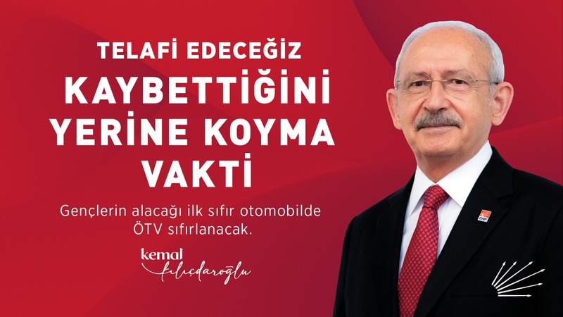 “Telafi Edeceğiz! KAYBETTİĞİNİ YERİNE KOYMA VAKTİ” kampanyası kapsamında ilk adım olarak Cumhuriyet Halk Partisi Genel Başkanı Kemal Kılıçdaroğlu’nun daha önce bir video çekerek açıkladığı gençlere yönelik 6 vaadi, Türkiye genelinde outdoor’lara çıktı. Reklam kampanyasına “Telafi Edeceğiz! KAYBETTİĞİNİ YERİNE KOYMA VAKTİ” sloganıyla çıkan CHP’nin kampanyası, halkın görüşleri alınarak belirlendi.