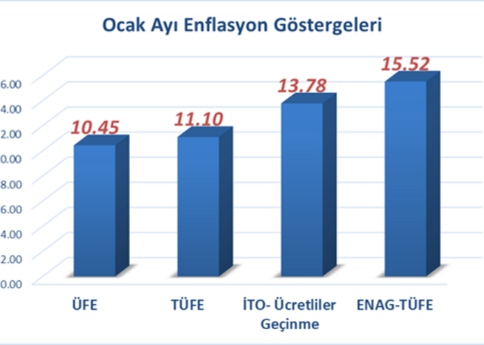 Hem tüketici hem de üretici enflasyonu, mevcut seride ocak aylarının rekorunu kırdı. Ocak ayında tüketici enflasyonu yüzde 11.10, üretici enflasyonu yüzde 10,45 oldu. Enflasyon Araştırma Grubu’na (ENAG) göre ise Ocak'ta tüketici enflasyonu yüzde 15,52.
